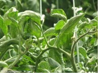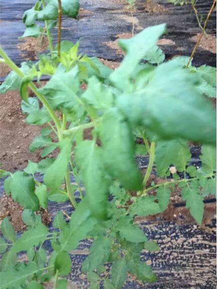 一、进入结果盛期后,番茄遇到高温、干旱天气而不能及时补充水分,此时叶面积大,高温和强光使叶片蒸腾作用加强,植株下部叶片易向上卷缩。尤其在通风口处番茄卷叶往往较重。