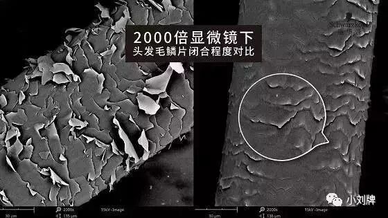 高倍显微镜照片已经证实,使用产品后,翘起的毛鳞片都乖乖的闭合了。