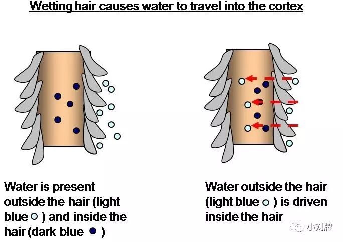 首先先要找出原因,头发为什么会变得难以打理,容易弯曲(我们称之为frizz hair)。归其根本,是因为毛鳞片的翘起和头发吸水溶胀。