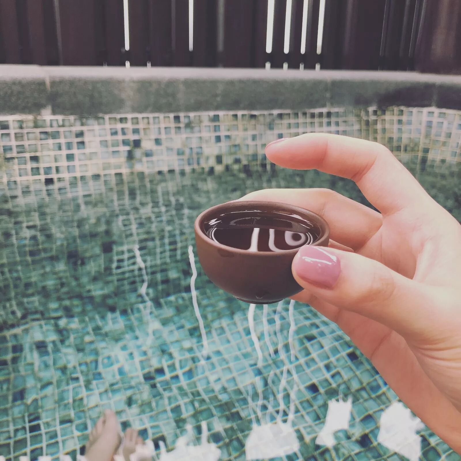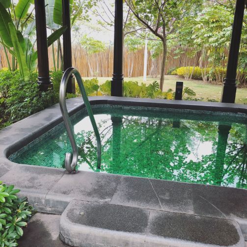 别墅房唯一的优点就是下图这个私人小温泉池,可以自己放水,房间提供茶具和香薰炉,我还带了面膜,泡汤的时候敷个面膜放个音乐,惬意的要死。而且这次从化温泉泡完,明显感觉身体皮肤光滑了好多。