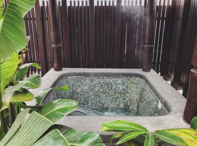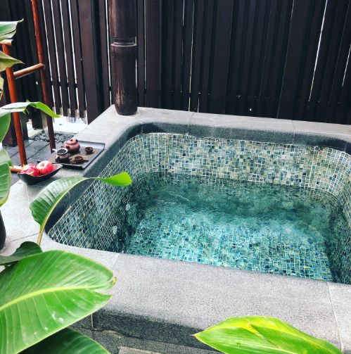 3、如果订了畔山别墅,房内自带的小温泉池也是很不错的,可以自己放水,私密性也好,房间提供香薰炉,建议带香薰油,泡着温泉敷个面膜喝个热茶还是很惬意的。
