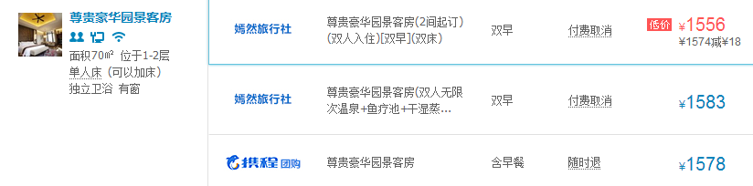 我是元旦前两天订的,价格不是很美丽,订了畔山别墅大概2600多,含无限次温泉和双早。查了最近的价格是在1500-2300之间。加一张床600元,含温泉门票和早餐。