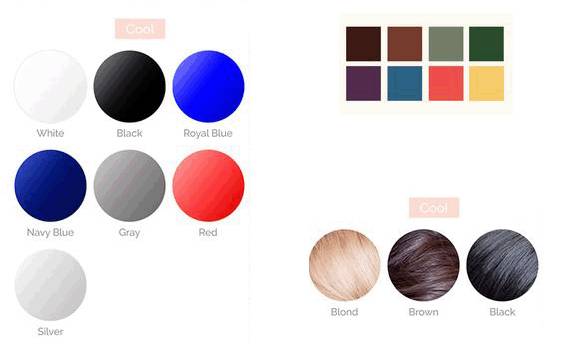 左边是冷色调能够轻松驾驭的色系,想要挑染的姑娘可以选择蓝色和灰色这样孤傲的颜色。日常的话,最能够衬托皮肤白的颜色就是深棕色和黑色了,如果你的皮肤足够白,金色也可以哦。