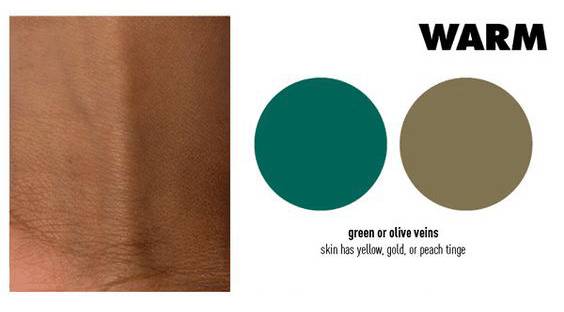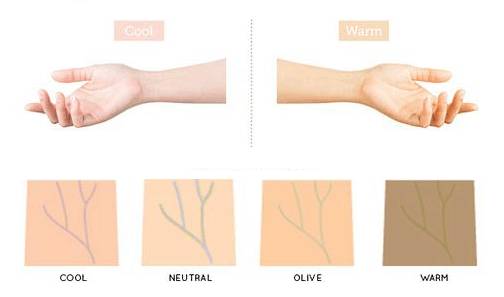 暖色调:你的血管看起来是很正的绿色或橄榄色,皮肤发黄,带着金色或浅桃色。