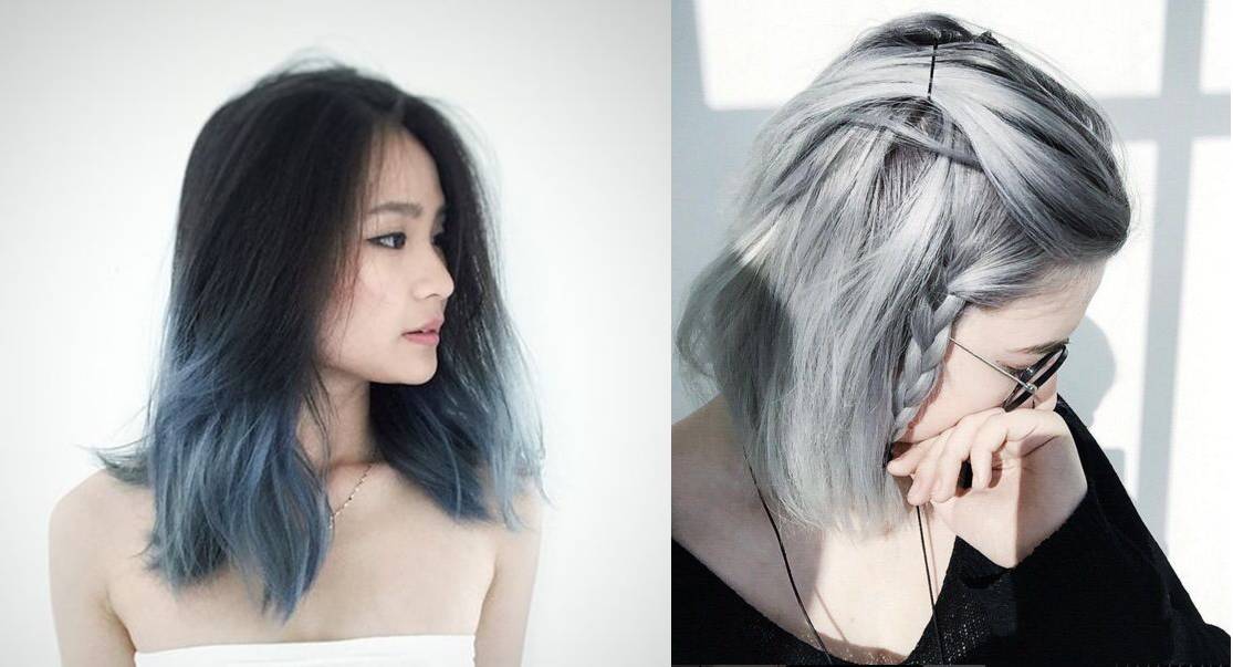 奶奶灰特别挑肤色,如果你是奶油肌肤可以尝试染整头,如果不是的话最好还是参考左边的妹子,把发尾挑染就好。