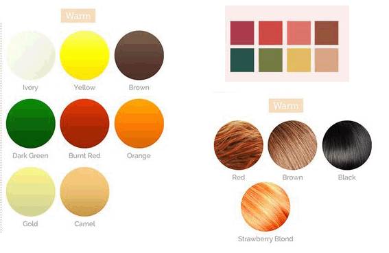 属于黄一白和黄二白的皮肤,因为肤色较白,所以可选范围会比较广。适合暖色调的色系如图: