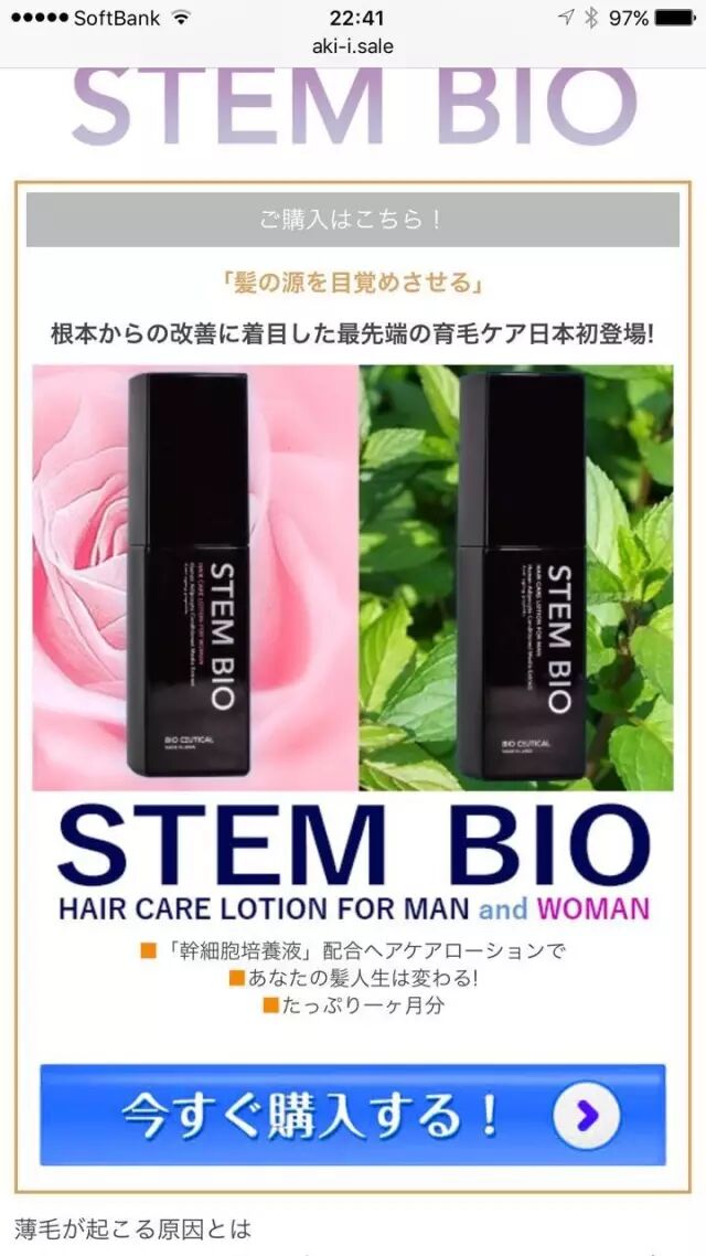 小编今天介绍的是一款在日本的电视台播放和山田電気,LAOX免税店都有贩卖的人体干细胞神仙生发水---STEM BIO