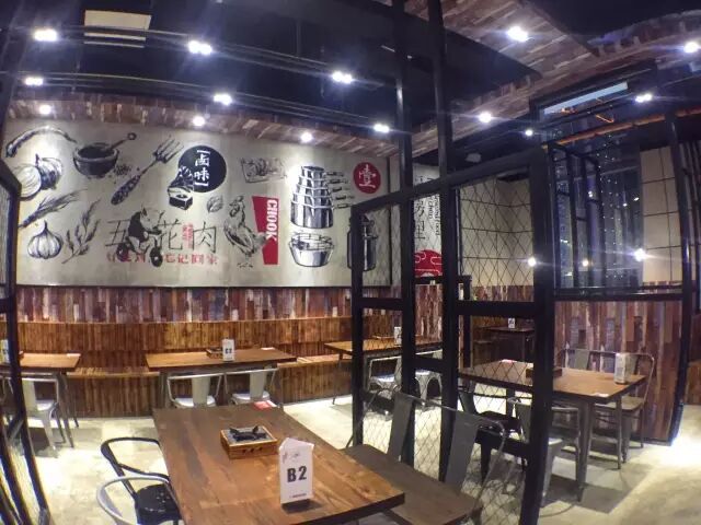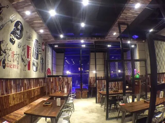店面不大,但是装修的很有个性:经典的LOFT风格呈现在我的眼前,墙壁上画满了涂鸦,硬气的钢铁构建出充满工业风的空间,铁网作为隔断,将餐位一桌桌分隔开,提供宽敞、大气的用餐空间。