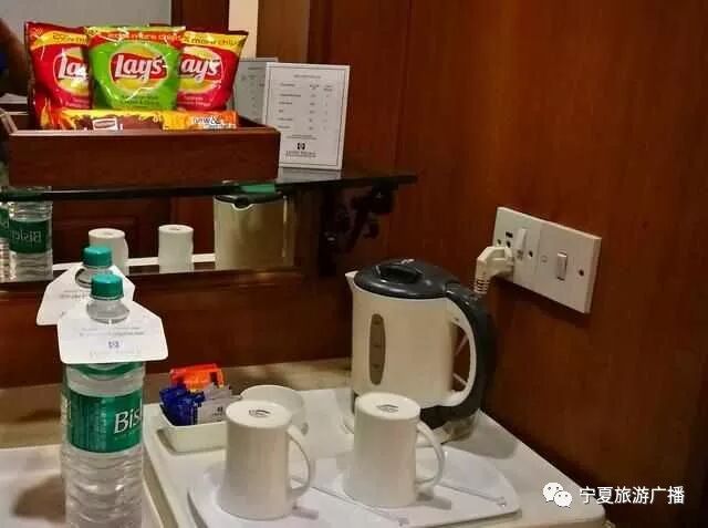 相对可能会纠结的是,无法确定Mini Bar 里的瓶装矿泉水(或者纯净水),是否免费。一般来说,大多数酒店每天都会有1-2瓶矿泉水是免费的。如果是免费的,一般在瓶子上都会挂上一个纸标牌,只要上面有“Complimentary”的字样,就是免费的,尽管放心饮用或拿走,如果没有标牌,在Mini Bar 的账单上也找不到,那就应该是免费的。