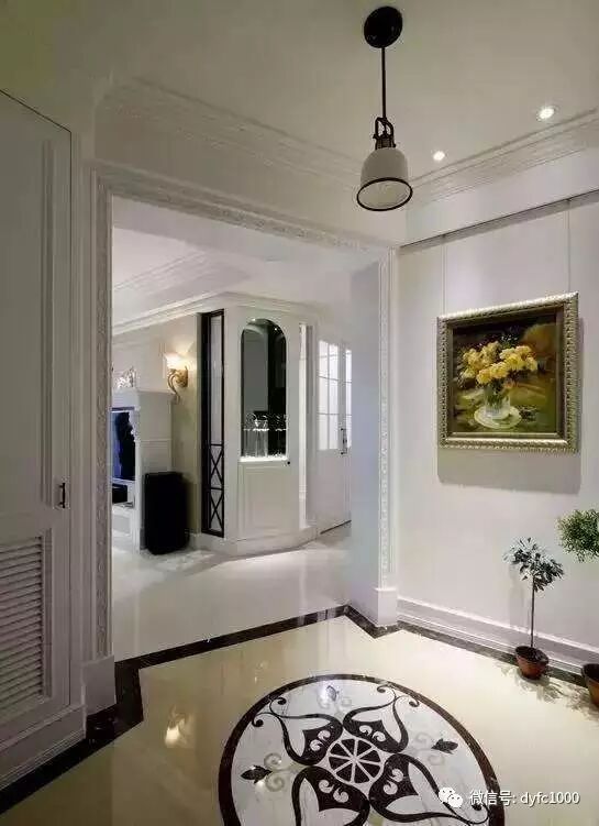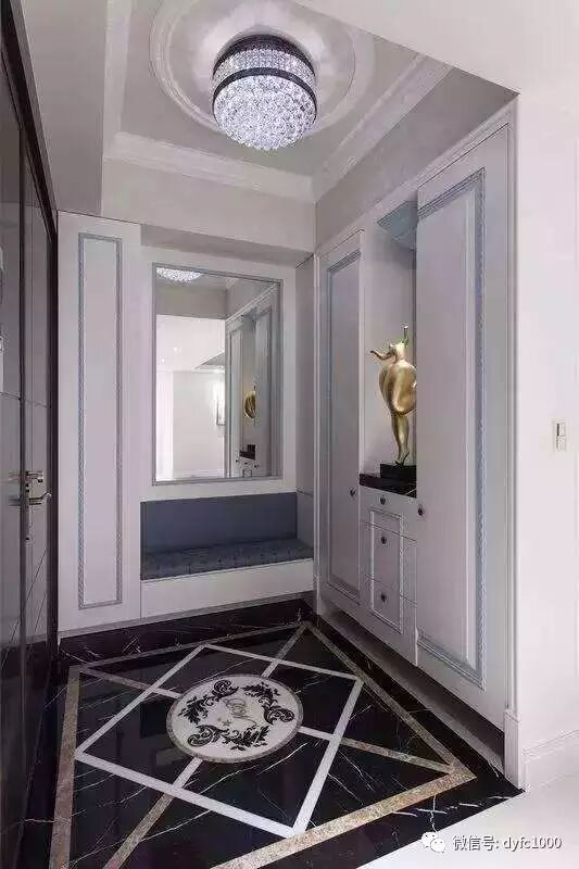 玄关地面的装修,采用的都是耐磨、易清洗的材料,如地砖、石材或复合木地板等等。墙壁的装饰材料,一般都和客厅墙壁统一。