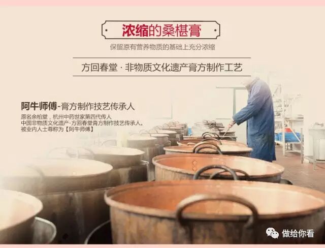 方回春堂制作膏方,百年传承,传统的工艺,古老的做法;七道工序层层递进,经过52小时的熬制,才能制作出营养美味的桑葚膏。