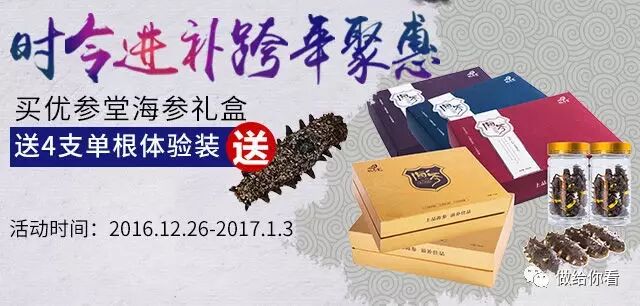 新年就要到啦!为回馈消费者对优参堂品牌的支持与厚爱,优参堂联合生活频道微商城举行大力度的促销活动啦,购买礼盒还送四支单根体验装哦!