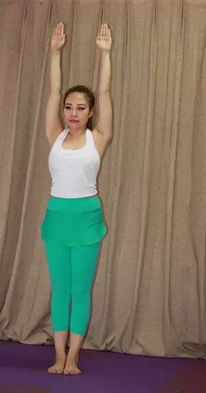 功效:通过练习,可将血液引向头部,改善脑部血液循环,同时又可拉伸脊柱和美容。