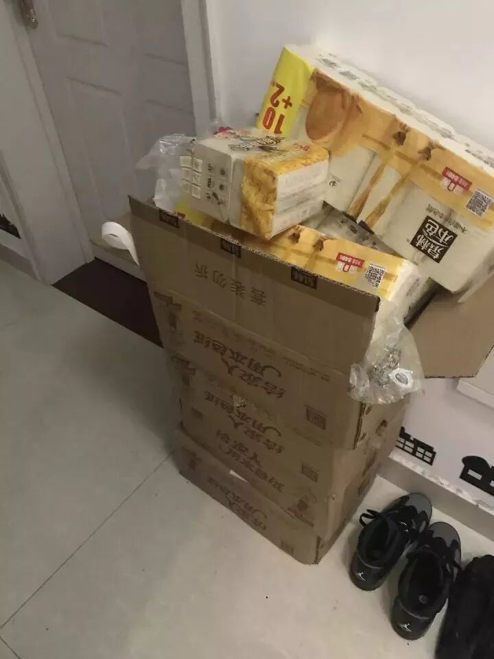 一名网友晒出的自己去年的战利品,N箱纸+N箱卫生棉+N瓶洗头膏+N瓶护发素+N个洗面奶+N瓶卸妆液……