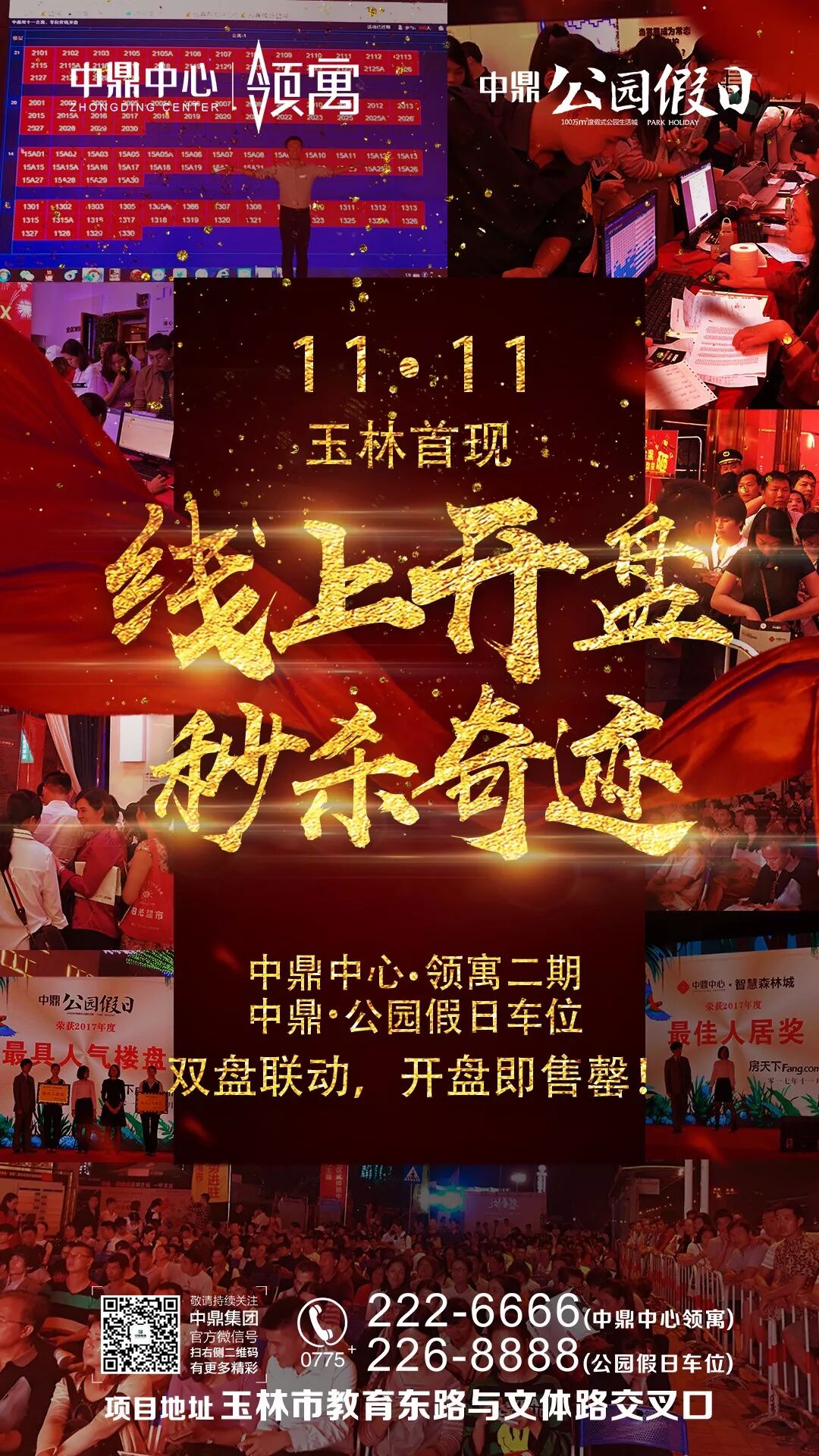 说到房价,双十一当晚,剁手的最开心的,莫过于玉州区的小伙伴了,当晚也是线上开盘,大屏幕也是秒杀全红,又一见证了中鼎集团开门红的奇迹!中鼎中心·领寓和公园假日车位,双盘联动,可以说开盘即售罄,比淘宝下单的速度更快!