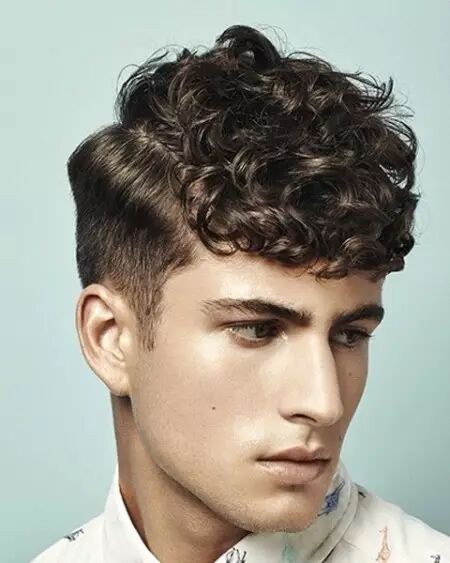 一款很适合欧美风的男士的发型,侧分的设计显得活泼有活力感,卷发纷纷向上,更加可以勾勒出男士的完美五官,阳光大男孩的形象就出来了。