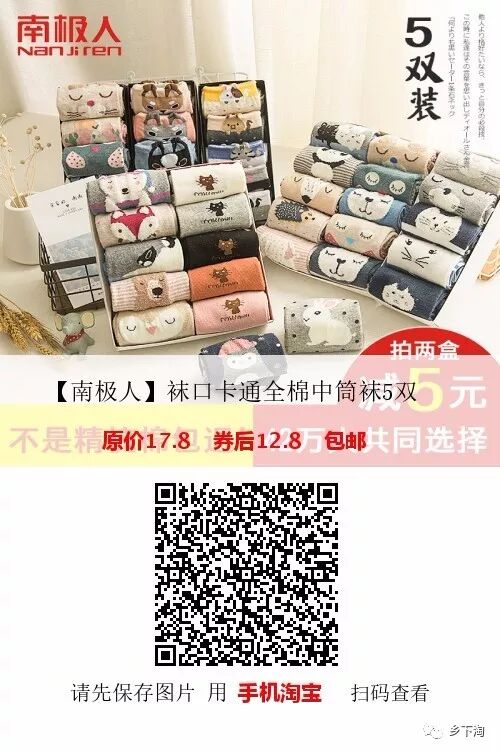 【商品】【南极人】袜口卡通全棉中筒袜5双