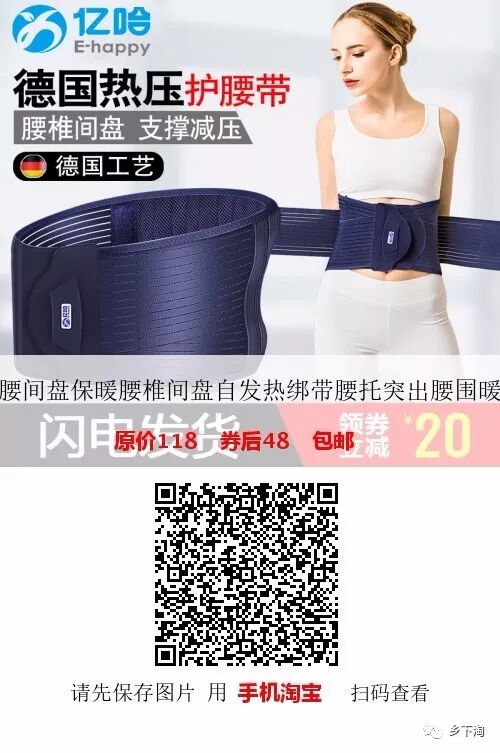 【推荐理由】减轻腰椎压力,德国热压强力护腰,减轻腰椎压力,男女四季通用,亲肤舒适,吸汗透气,护腰选亿哈!赠品浪莎袜子艾灸蜂巢垫片自发热垫片加绒垫片,顺丰包邮,有运费险。