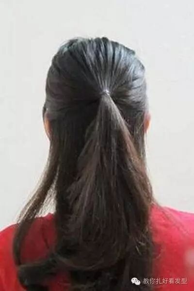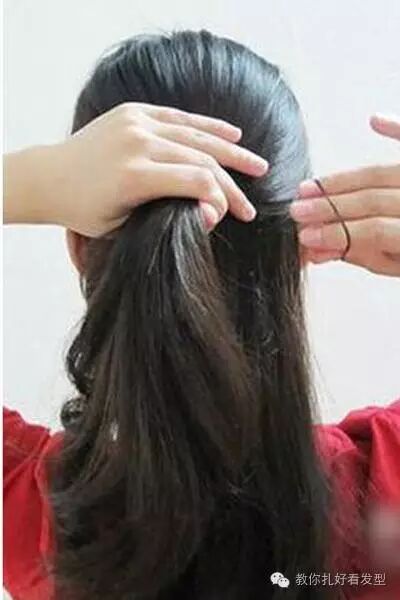 步骤三:然后用一次性皮筋扎好一个马尾。