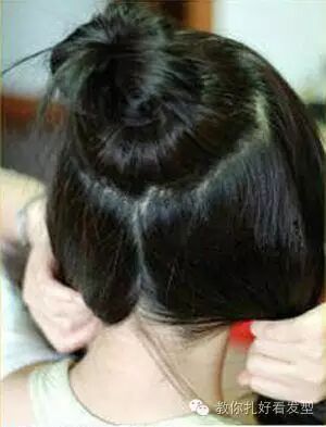 脑后的头发分做两边,注意分发线一定要均匀。