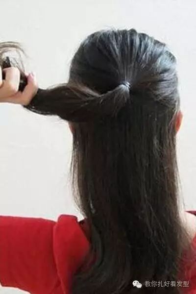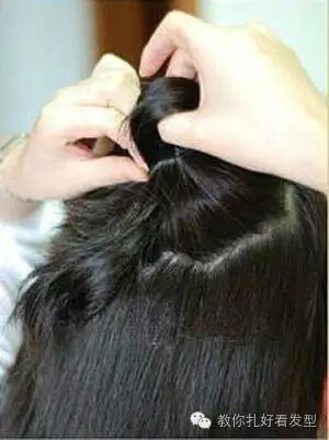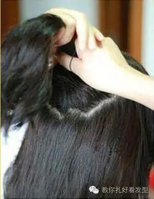 步骤九:把剩下的头发分成两部分,取其中一部分往相对的方向。