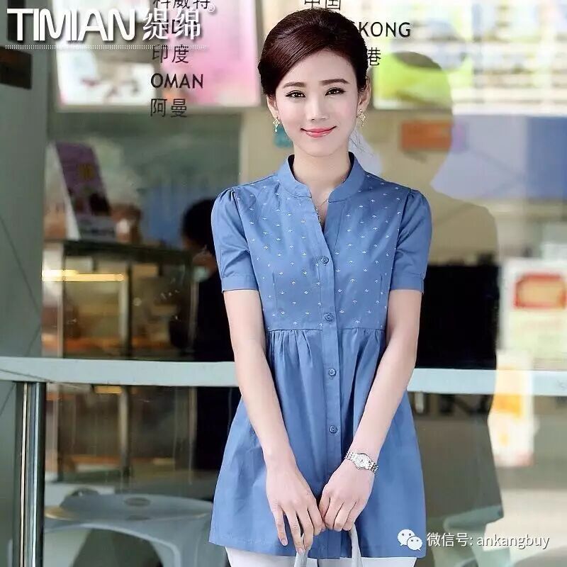 碎花衬衣女短袖2017夏装新款30岁40中年女装妈妈装中长款衬衫上衣【包邮】