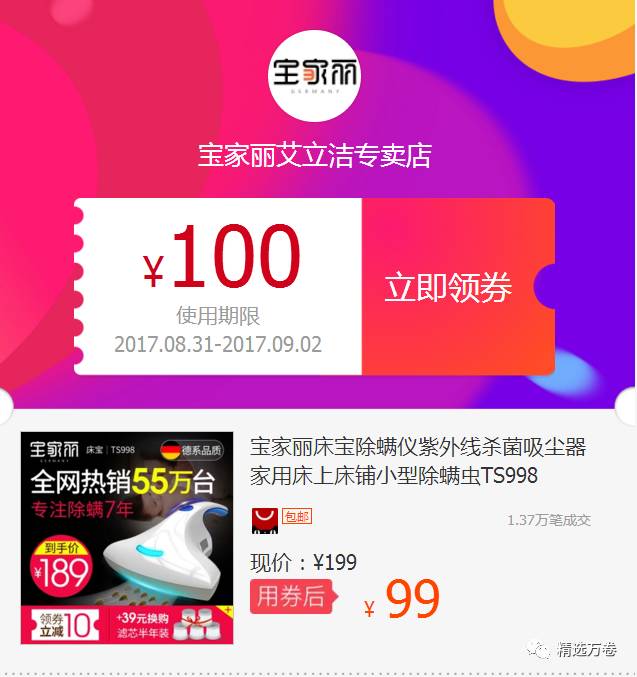 宝家丽床宝除螨仪紫外线杀菌吸尘器家用床上床铺小型除螨虫TS998【包邮】