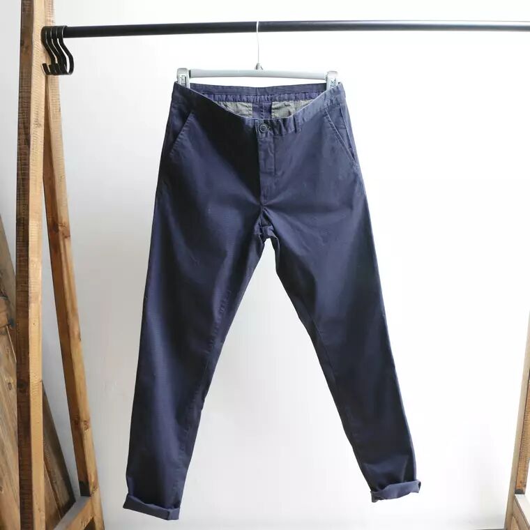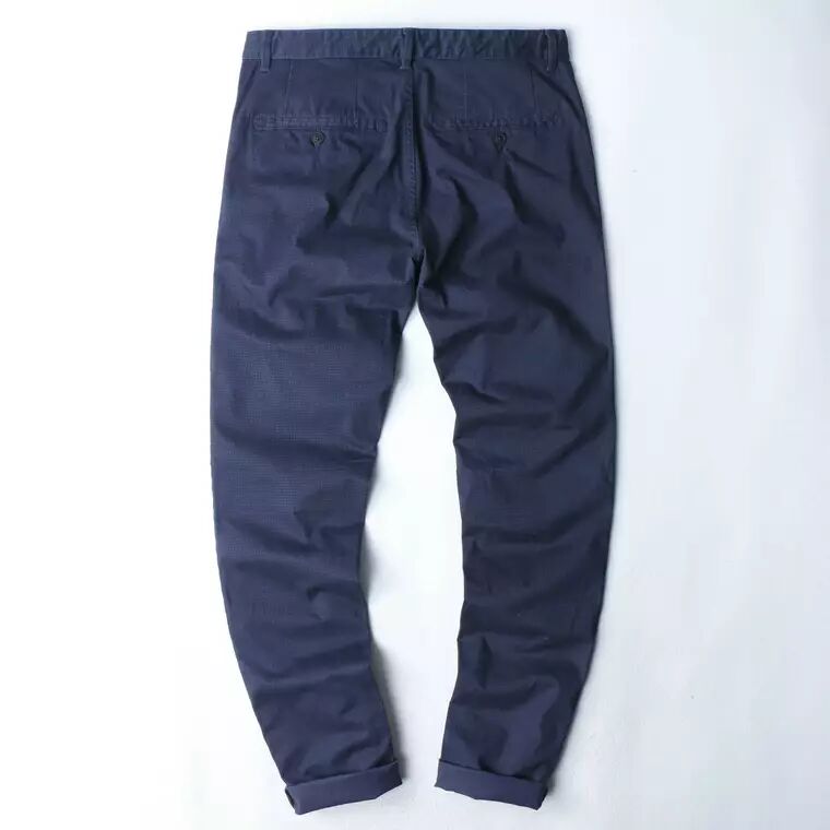 夏季薄料洗水休闲裤,偏正装款式,商务休闲风格,各方面的设计都和西裤比较类似,但是剪裁是偏修身的,SLIM CHINO效果,商务休闲非常不错的选择。