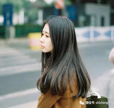 中分中长直发乌黑柔顺,这么好的头发就不要做太多的烫发处理,仅将发尾烫成很小弧度的向内卷发就可以了,2017年流行的韩式简约黑色中分直发内扣发型,真的非常适合清丽容颜的文艺范儿少女呢。