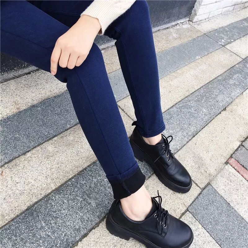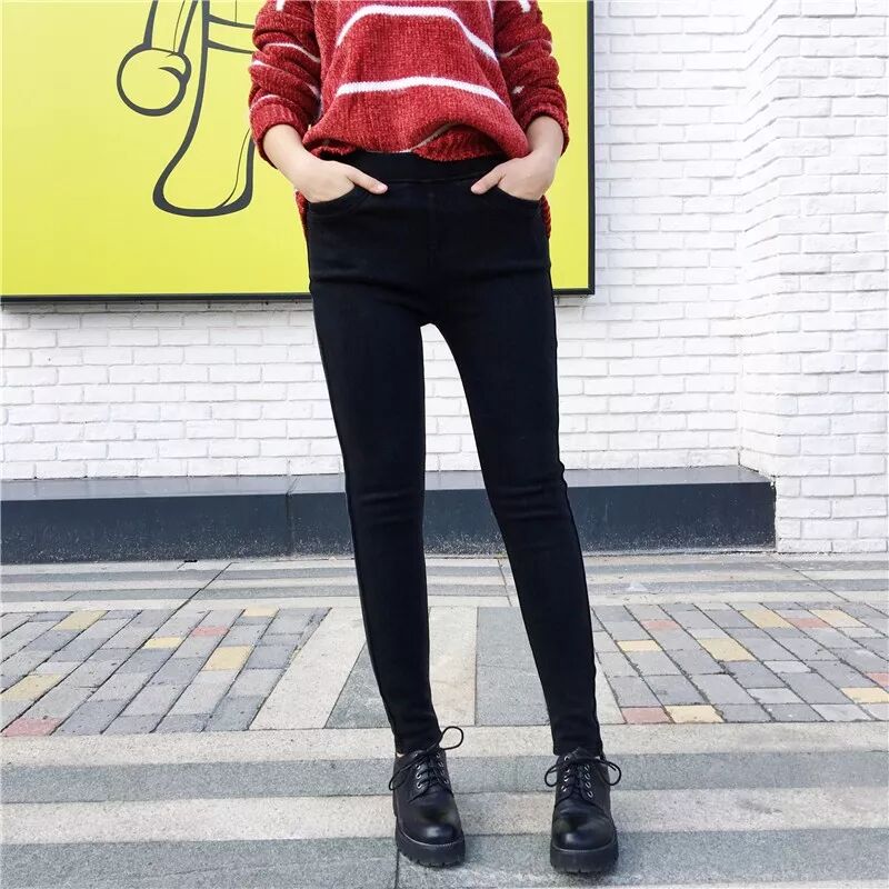 3、松紧腰加绒纯色小脚裤
