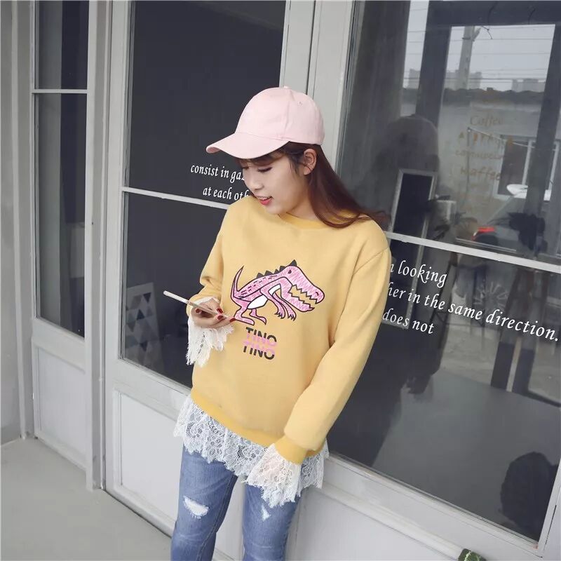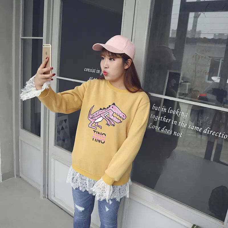 舒适的圆领搭配直筒的版型,宽松有度,穿着显瘦不臃肿。 加厚加绒的卫衣棉,柔软舒适又不失挺括,袖口和下摆都做了蕾丝的拼接。 休闲的同时又加了一些少女的气息哦!亮眼醒目的黄色, 显的皮肤白又显得靓丽!基本搭配一条小脚裤就可以走遍天下啦! 大徐试穿XL合适!艳楠试穿3XL合适哦!