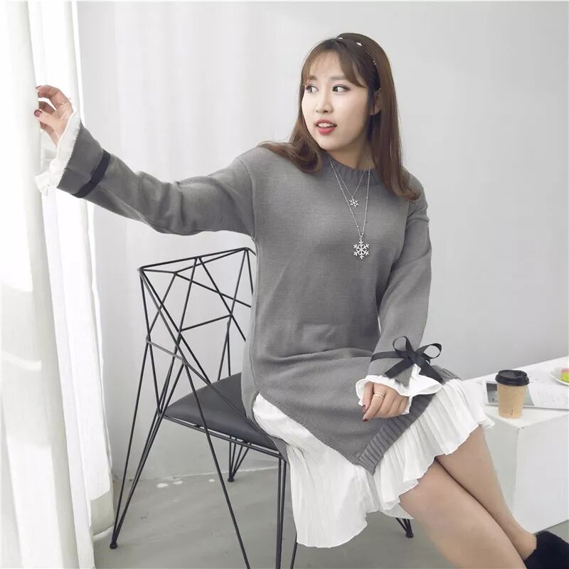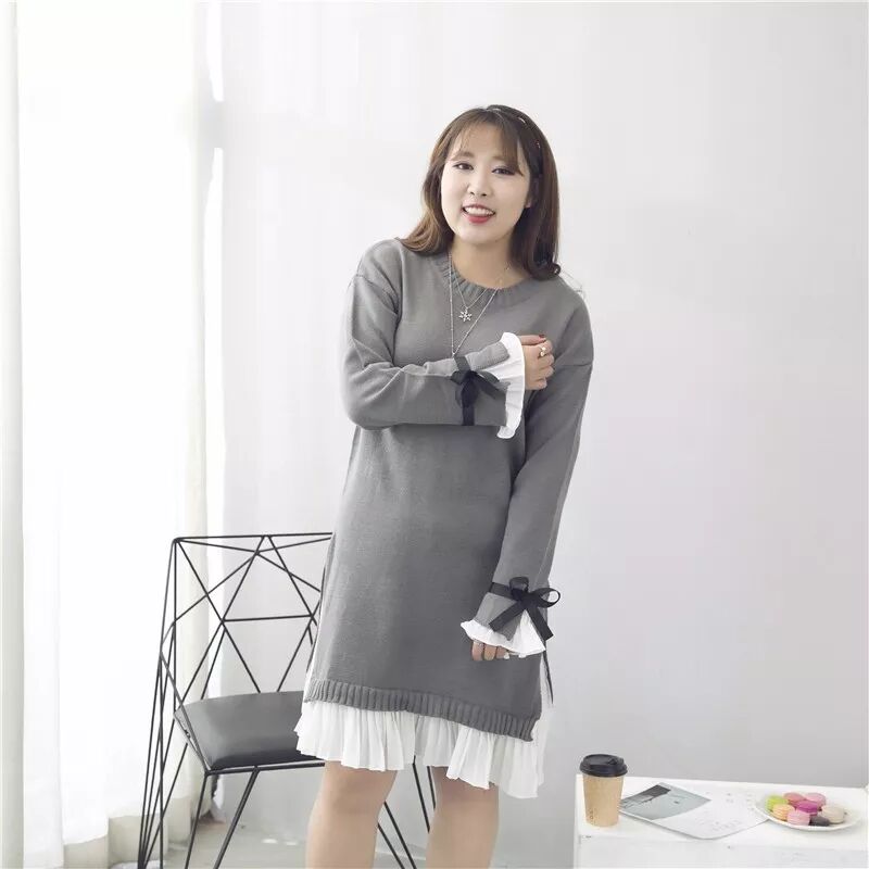 舒适的圆领+落肩袖显得慵懒自得,灰色给人一种很温柔减龄的feel! 袖口衣摆处都做了雪纺的拼接,袖口又带着蝴蝶结的装饰, 各位对这样淑女的款是不是很心动呀。 这款针织面料。柔软舒适,穿着不扎身。上身秒变温柔小女生哦! 搭配一条打底裤然后穿小白鞋或者靴子都很好看啦。 大徐试穿XL艳楠试穿3XL合适。