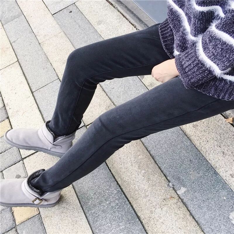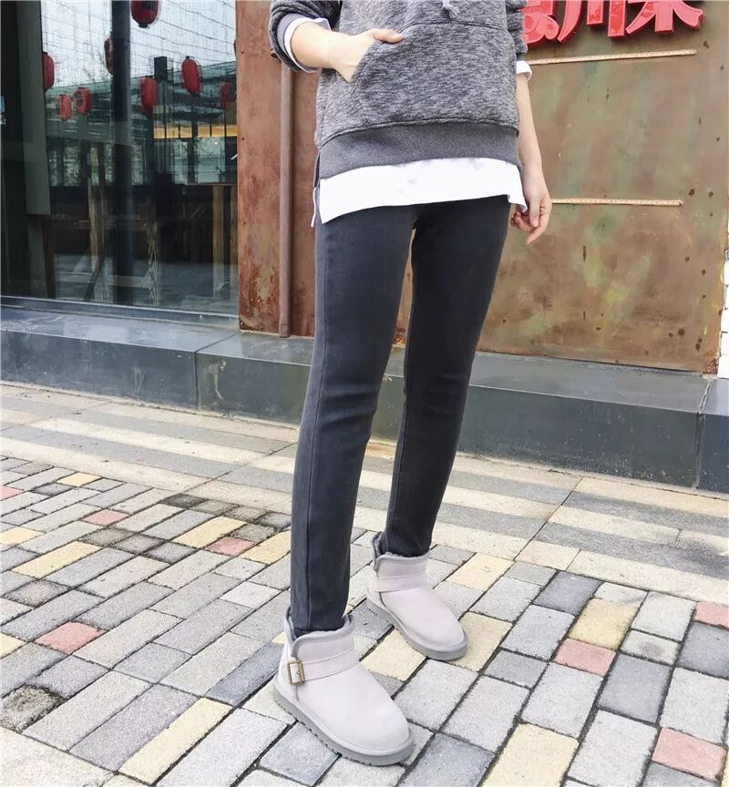 8、加厚加绒灰色修身小脚裤
