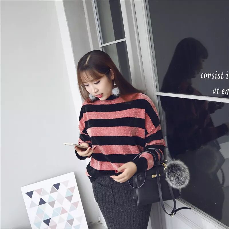6、宽松撞色条纹毛衣