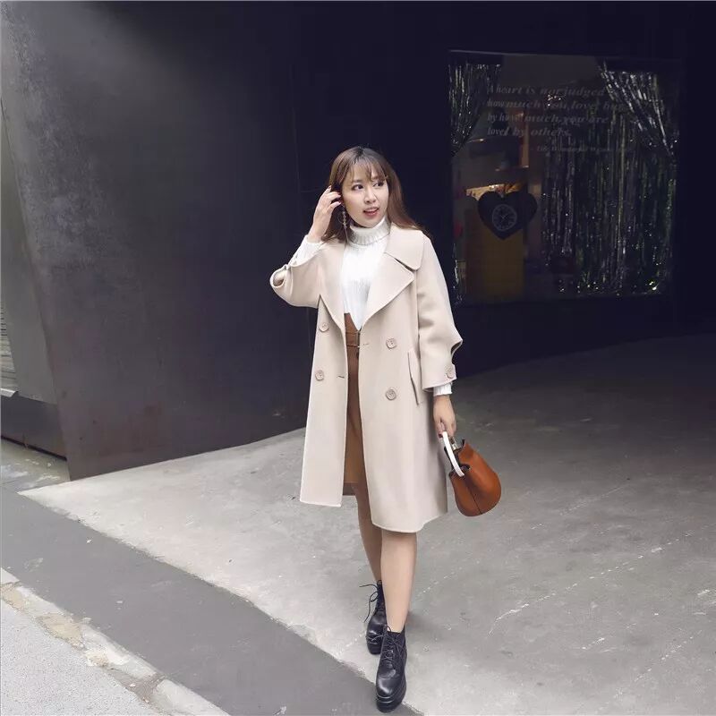 双面呢的优点——选用天然优质坚韧的纯羊毛制作而成,纯手工制作。 由上下两片面料,纯手工缝合,制作的成本和时间来说都比一般大衣多的多, 当然出来的成品质量也是让人惊喜和喜爱的。因为羊毛质感优质, 摸起来细腻顺滑,羊毛质感紧密,上身廓形好,不易起皱起褶,抗风保暖! 大徐试穿XL合适,艳楠试穿3XL合适。