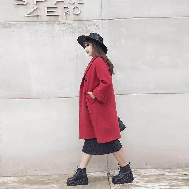 翻领+宽袖让整体看上去随性随意。带着一些休闲感。 中长款+双排扣显出人的气场很有范儿哦。两侧设计有实用的口袋! 单面毛呢面料,百分100羊毛!温暖抗风!加厚处理,走线工整流畅。不易变形,经过锁色工序,色泽度饱满鲜艳。穿着不会有束缚感,干净又耐穿的款式!大徐穿XL合适,艳楠穿3XL合适!