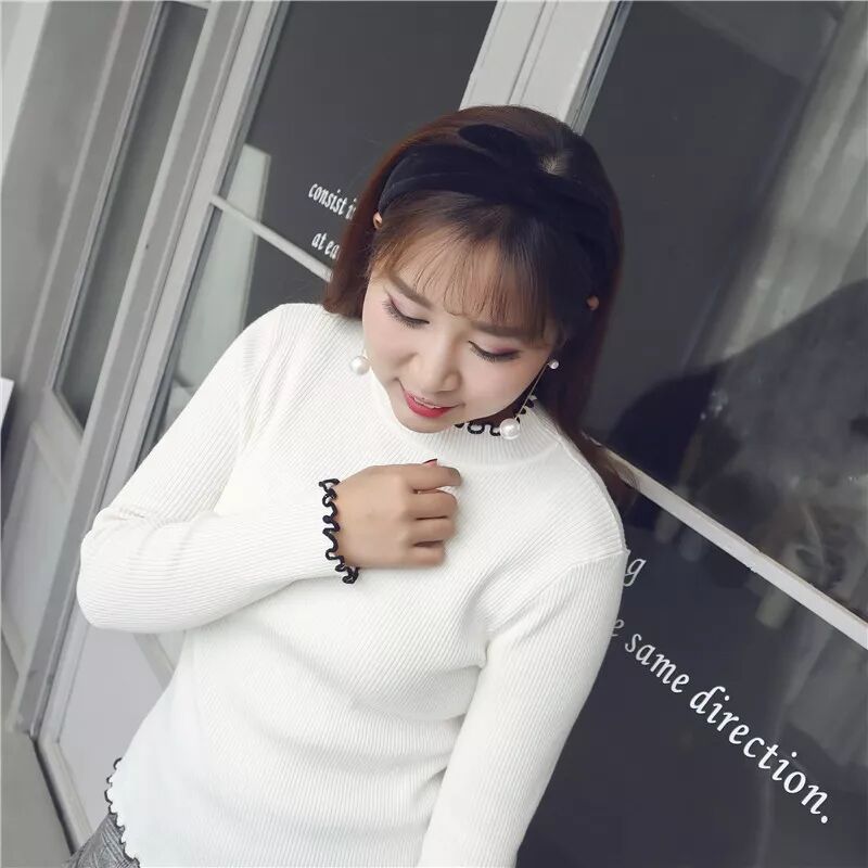10、必败!撞色木耳边针织打底衫!高弹!