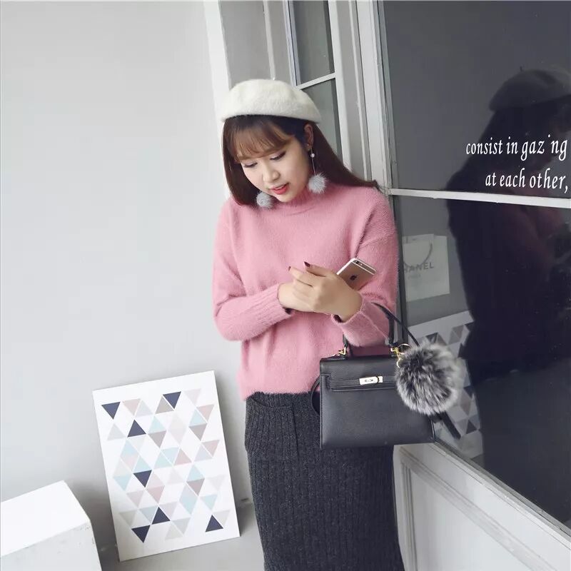 17、淑女款!兔毛纯色高领毛衣