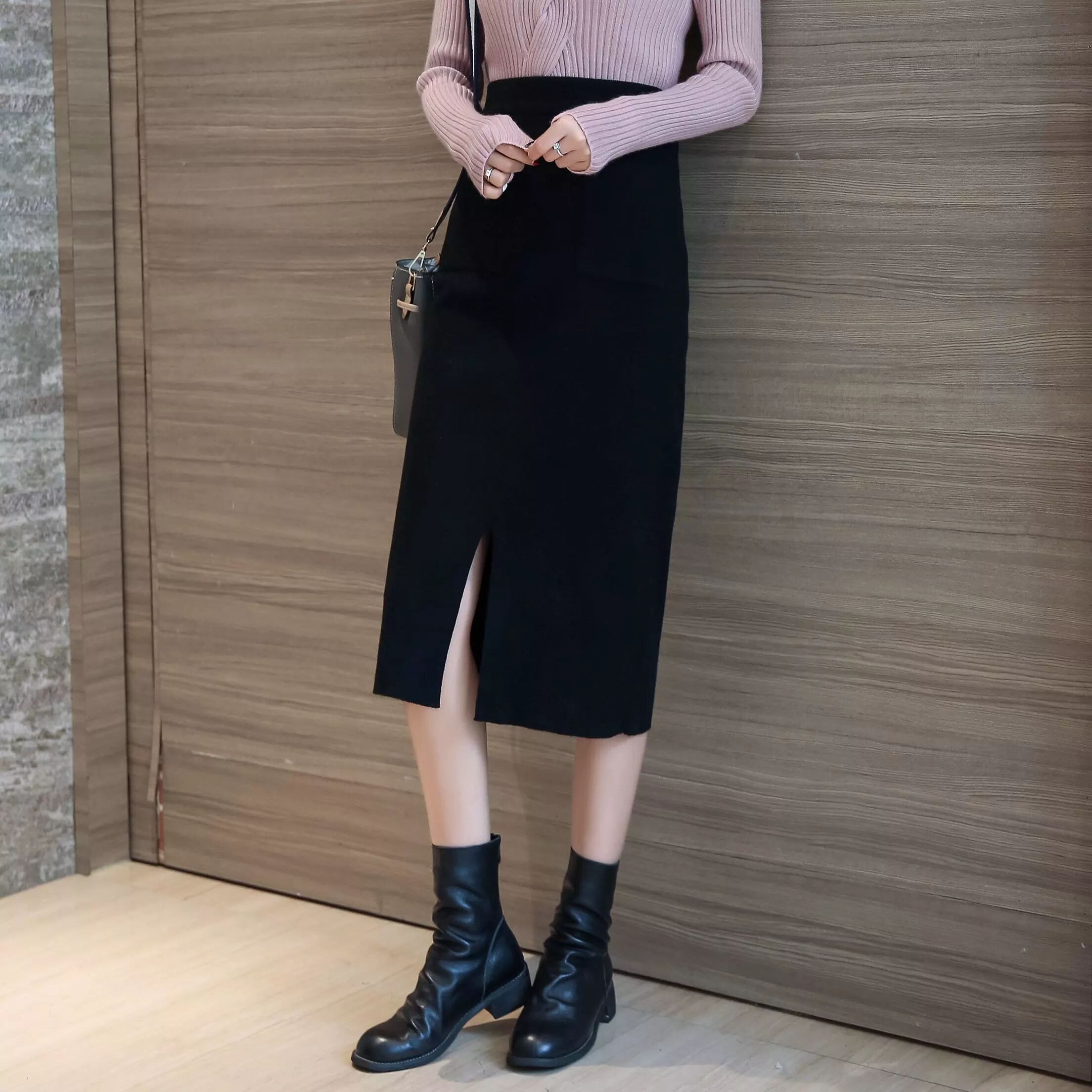 11、必入款!百搭纯色包臀针织裙!高弹!