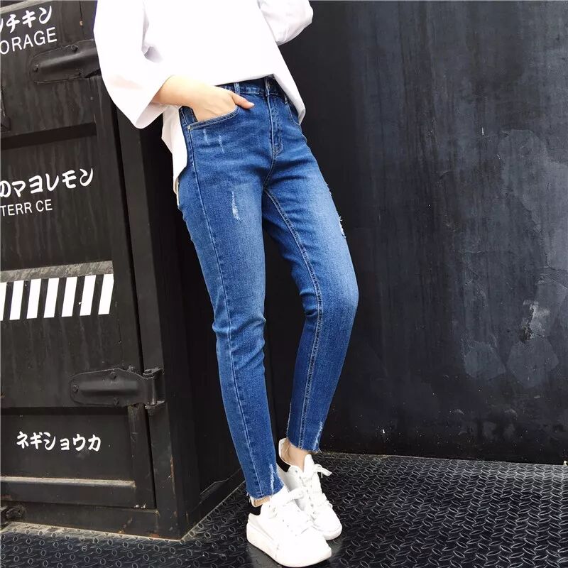 简单的修身小脚裤款式,上身修身显瘦, 手感柔软的牛仔布面料,经过水洗,弹力好,不易起球和变形。 中高腰长裤款,大腿和裤脚处有不规则的磨白猫爪处理,看起来很休闲大气。 细节处的压线也做的很工整哦,耐穿耐磨,这款裤子的颜色是很正的牛仔蓝。 随意的搭配一件卫衣或者毛衣就可以出门啦。大徐试穿32修身合适!