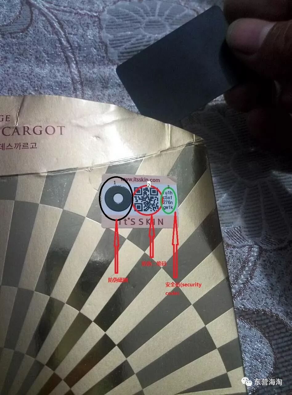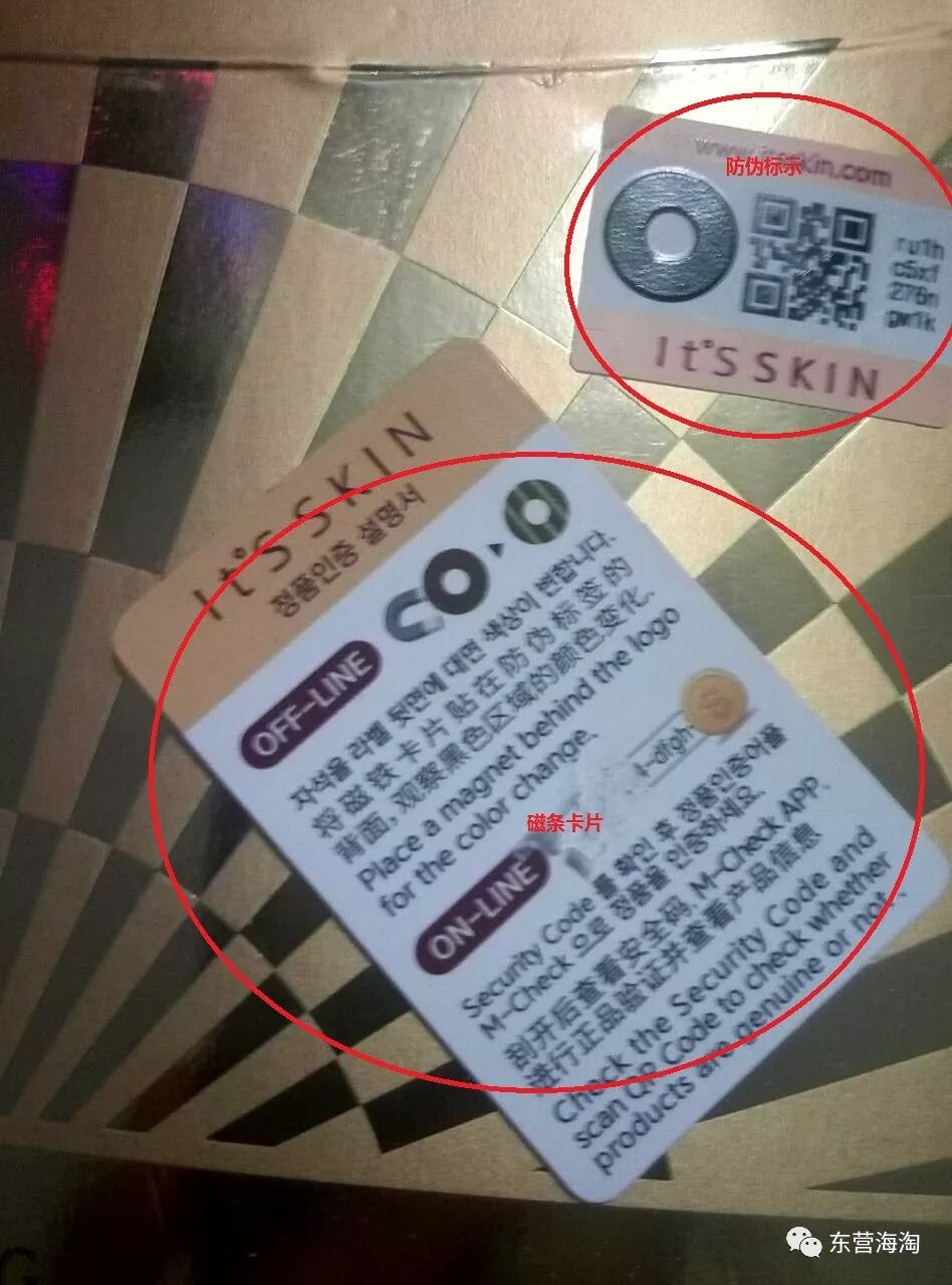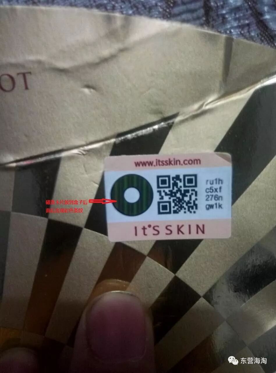 图中大红圈圈示部分为随产品带的磁条,请把磁条放置到盒子防伪标识的后面。