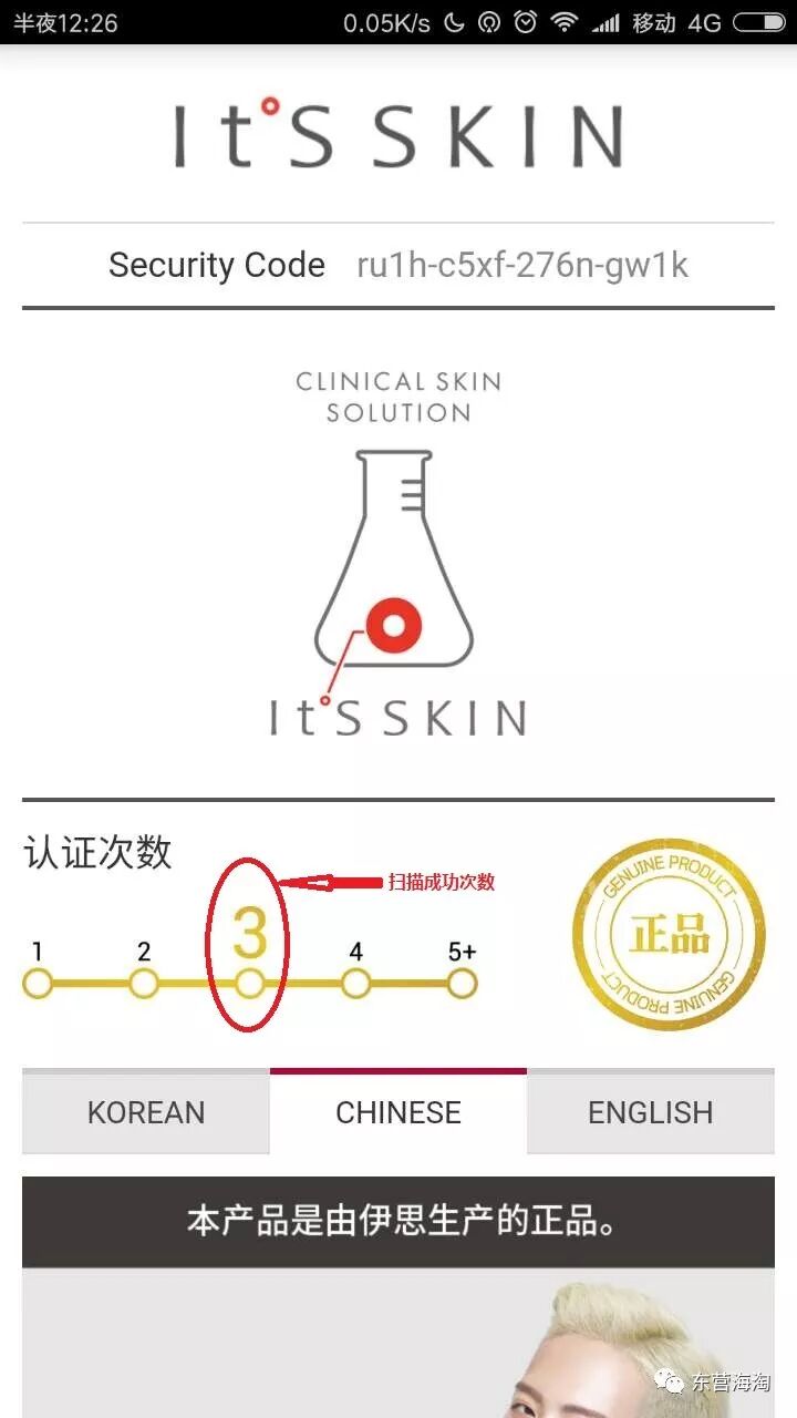 结果显示为正品。顺便说下扫描了三次,所以认证次数显示为“3”