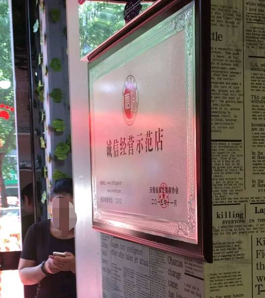 这家萧邦美发店内收银台显眼位置,摆有一奖牌,系安徽省美发美容协会2015年11月颁发给萧邦美容美发店的,奖牌上硕大的字写着“诚信经营示范店”。据安徽省原美发美容协会理事长证实,该协会已多年未正常开展工作,未给任何美发经营机构发放任何奖杯奖牌,“萧邦”也不例外。