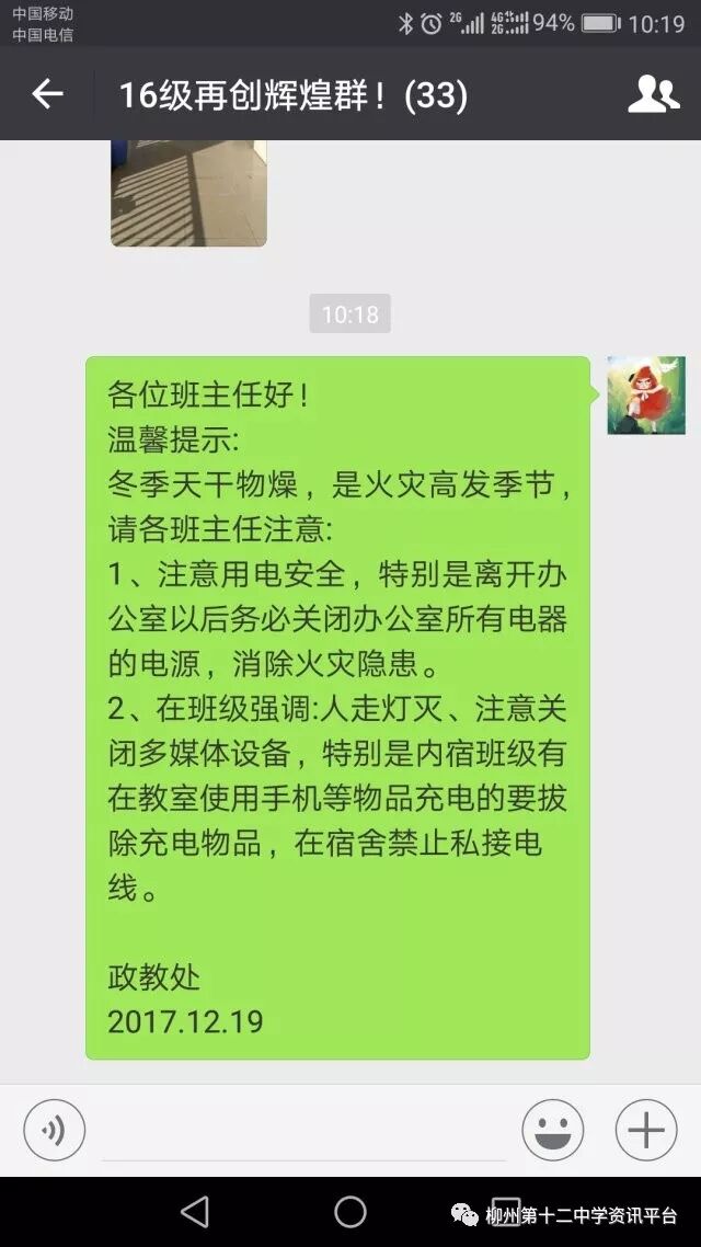进入冬季,风干物燥,气温持续下降,雪、雾、风、霜、冻等恶劣天气增多,是一年中最易发生火灾的季节。为保障全校师生度过一个安全的冬季,12月19日上午,由陈锡铭副校长牵头,教务处、政教处、总务处联合派出部门领导对学校各办公室、功能室进行电器火灾安全隐患排查,逐一强调用电安全,做到人离开办公室后关闭电源,杜绝火灾发生。排查结束,政教处通过微信群再次向班主任强调用电安全。