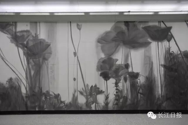 香港路地铁站,大厅里的水墨风格的艺术幕墙,携着一股浓浓的中国风扑面而来 长江日报记者许魏巍摄