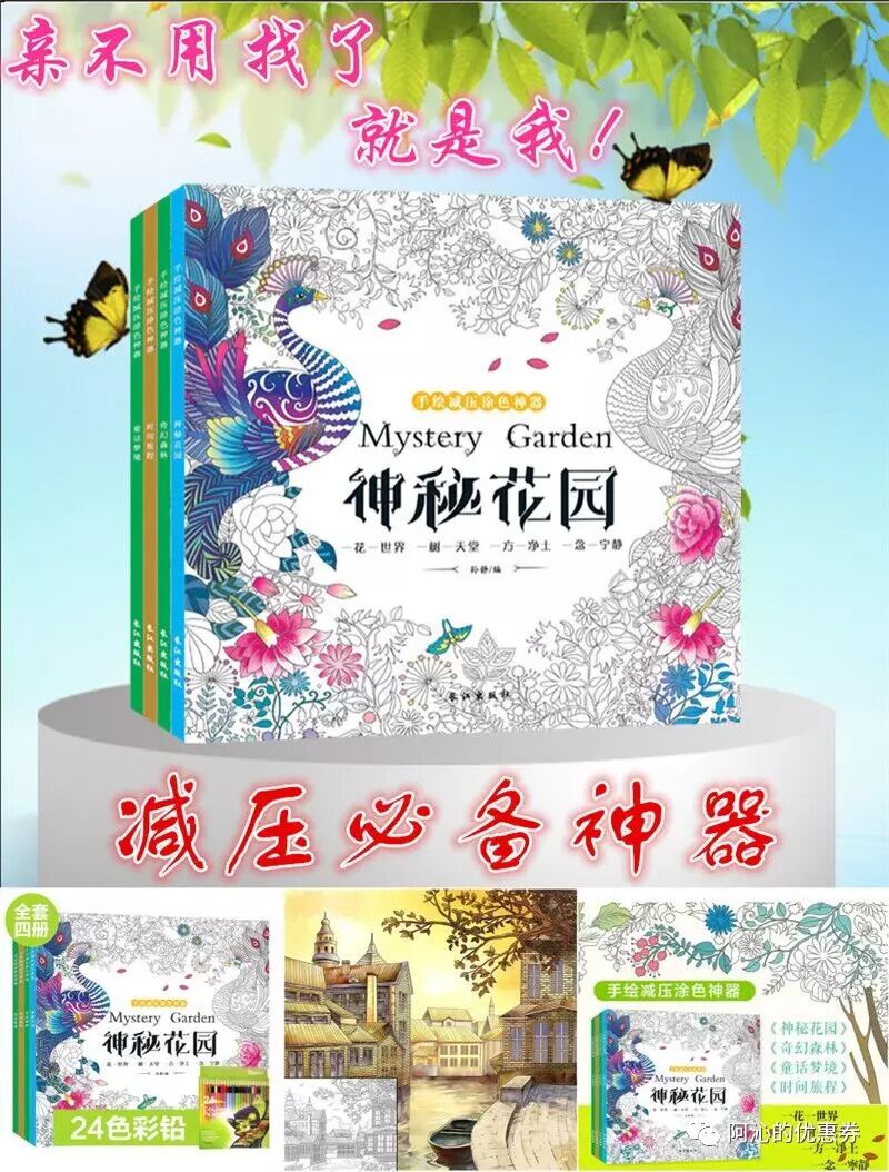 【精选理由】☞神秘花园—今年最流行的彩绘本,创意涂鸦填色,4册装手绘涂色,培养专注力,减压放松,舒缓情绪,发挥你的创造力,彩绘出属于你的个性世界,送24色彩铅