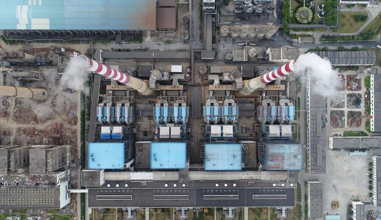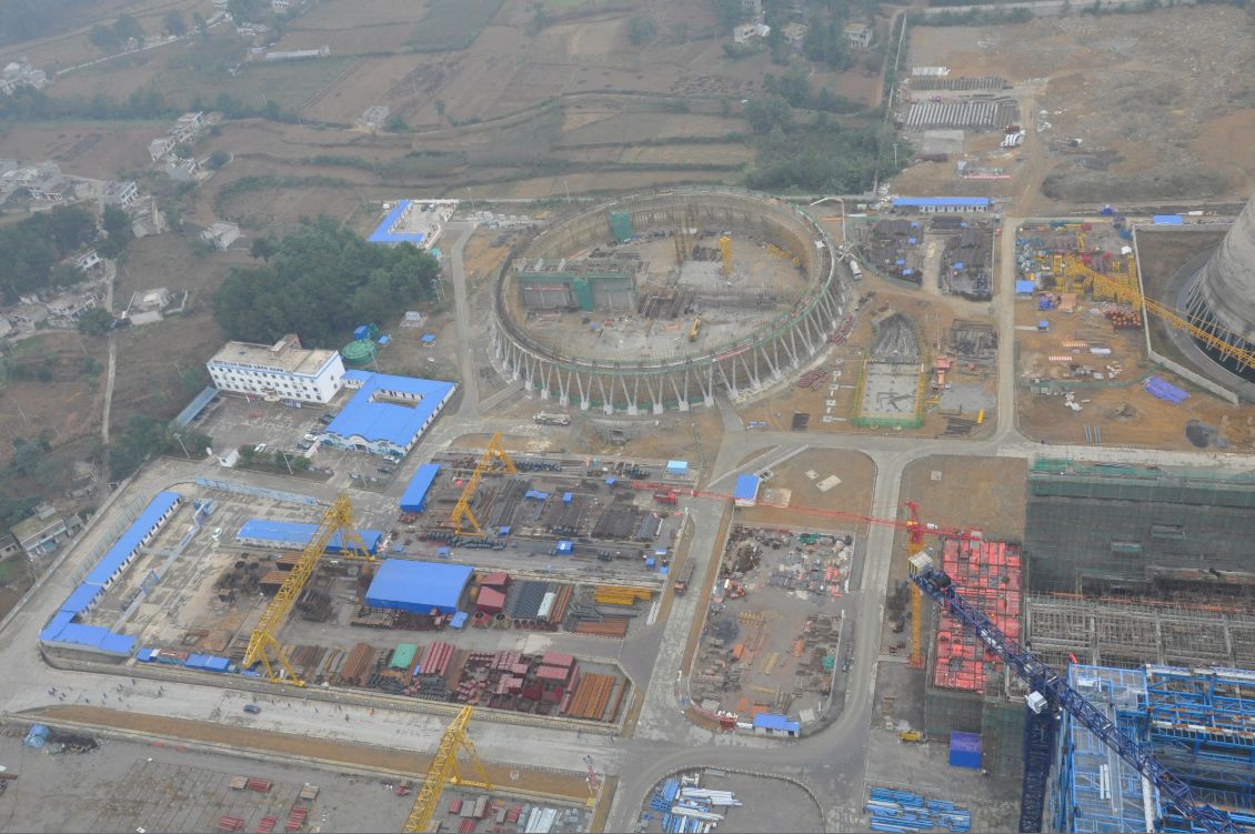 电厂建设期间站在烟囱俯瞰建设场面,一眸眸中迎来了一个新生,迎来了一个为之奋斗终身的伟大事业。