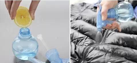 在清水中,加入几滴柠檬,制作成柠檬水,喷洒在衣服上,然后将衣物挂在通风口处晾约一小时,就能去除异味。