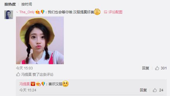 最近呢,又有一个人穿起了汉服,这个人绅士们也相当熟悉了,她就是冯提莫!