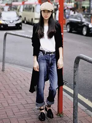 显瘦的中长针织开衫内搭T恤,尽显女生的简约感觉。加入直筒牛仔裤和尖头单鞋,大气的个性街头范脱颖而出。